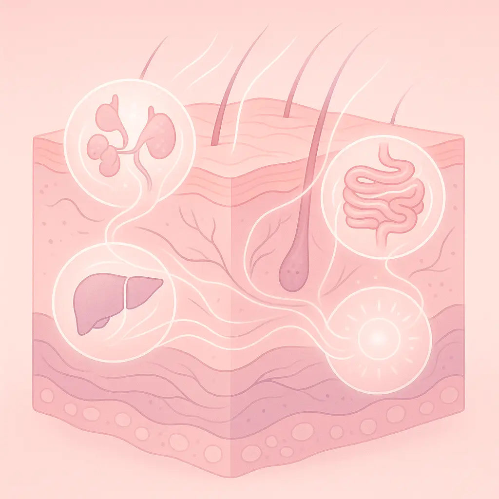 Serums, creams, and peels can hydrate, brighten, or soothe, but they don’t address the internal factors that can influence how your skin looks.