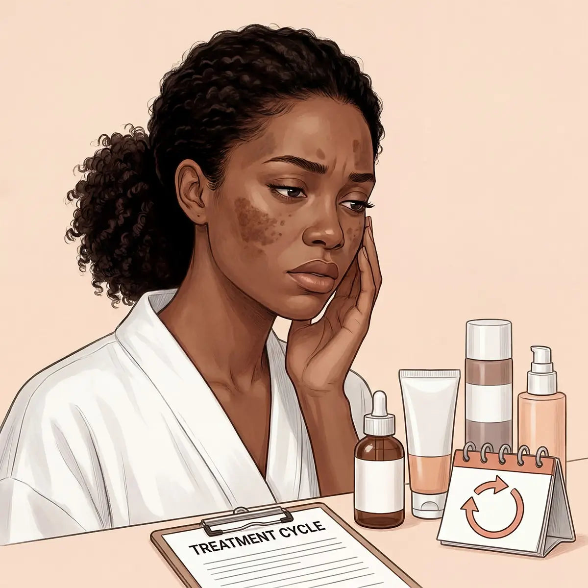 Brightening serum → small improvement → plateau → marks return → new product → repeat.